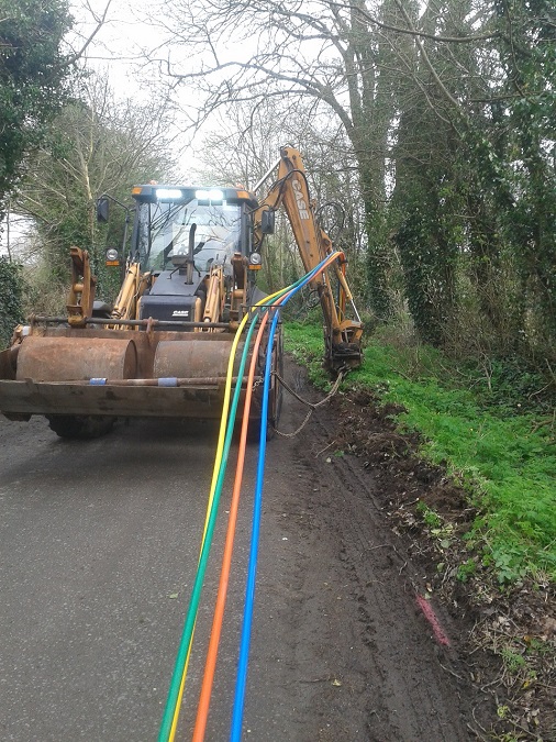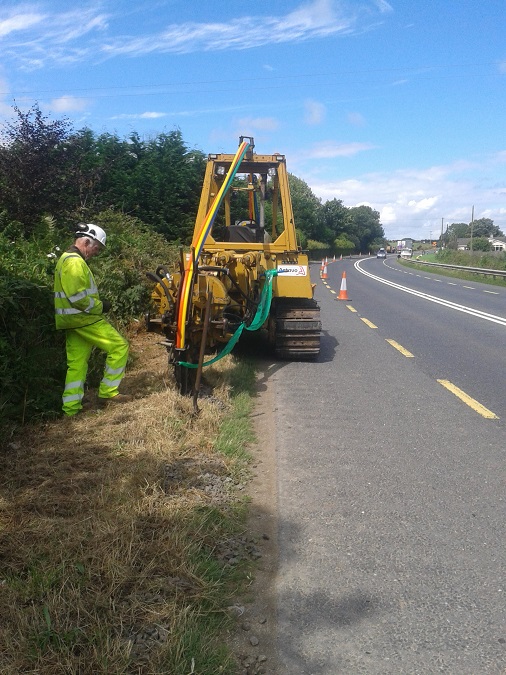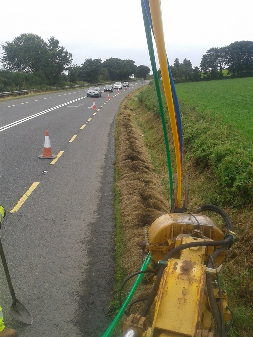 We install fibre optic broadband ducting networks fast our fastest yet has been 7500m in one working day! We can lay multiple ducting with warning tape on roadside verge with minimal disturbance to traffic or the environment with the leased traffic management hire. It's the most efficient method!
